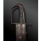Fourreau en cuir, chape et bouterolle en forme de cœur stylisé.