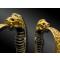 Calotte à longue queue à tête léonine et yeux en perle de verre rouge, frise de motifs feuillagés.