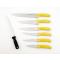 Set comprenant 1 fusil a aiguiser et 6 couteaux avec manches plastique jaune et lame en acier inoxydable dont voici le détail :