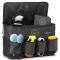 Les fonctionnalités du Sac de Box ne s'arrêtent pas là. Il est équipé de quatre larges poches frontales, idéales pour ranger divers accessoires. Des bandes d'attache avec mousquetons sur un côté et une poche filet de l'autre ajoutent à la polyvalence de ce sac. Facilement fixable à une porte de box grâce à deux mousquetons noirs fournis, il offre une organisation optimale.