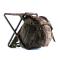 Sac à dos avec tabouret intégré avec compartiment principal et poches extérieures zippées et en filet sur le côté. Fabriqué en polyester avec finition Camo Fluff anti-bruit. Transport grâce à des bretelles rembourrées.