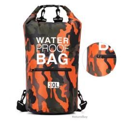 SAC À DOS ÉTANCHE 30L + POCHE EXTERNE ZIP - DRY BAG - ORANGE - LIVRAISON GRATUITE
