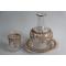 Service de nuit Saint Louis en cristal gravé, émaillé or comprenant une carafe (hauteur : 17 cm), un gobelet (hauteur : 8,5 cm) et une soucoupe (diamètre : 17 cm) bon état