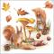 Les Serviettes « Écureuil et champignons » apportent une touche automnale et chaleureuse à votre table. Chaque paquet contient 20 serviettes en tissu 3 plis, douces et résistantes, parfaites pour tous vos repas de saison. Composition : tissu 3 plis, 100 % FSC, blanchi sans chlore et couleurs en base d'eau. Nombre de serviettes : 20 par paquet. Thème : écureuils et champignons.