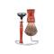 Set de rasage PLISSON « HERITAGE », 3 pièces, manche du rasoir et monture du blaireau bubinga, comprenant : - un blaireau monture haute pur Gris de Russie (réf. 955530). - un rasoir Mach3® (réf. 954530). - un support en laiton nickelé.