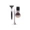 Set de rasage PLISSON « JORIS », 3 pièces, manche du rasoir et monture laqués noirs à fines rayures blanches et laiton chromé, comprenant : - un blaireau pur Gris de Russie (réf. J5294). - un rasoir Mach3® (réf. J1292). - un support en laiton chromé.