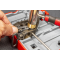 Il contient : - 1 massette - 4 têtes différentes interchangeables pour la massette (coutchouc, bronze, acier et nylon) - 1 pince pour l'alignement des goupilles - 10 chasse-goupilles différents (standards et ronds en acier trempé, ou résine)