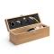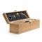 Le coffret à bouteilles de vin en bois est le complément parfait pour transporter et présenter la bouteille de vin de manière élégante. Fabriqué en bois, ce coffret offre une protection sûre et un look sophistiqué. Le coffret présente un design spécial qui comprend un ensemble d'accessoires de vin présenté dans le couvercle. Cet ensemble se compose d'accessoires en acier inoxydable, tels qu'un tire-bouchon avec un coupe-capsule, un distributeur, un bouchon et un anneau antigouttes. Ces éléments constituent tous les outils nécessaires pour ouvrir et déguster la bouteille de vin en toute simplicité. L'intérieur du coffret est rembourré pour assurer la sécurité et la stabilité de la bouteille pendant le transport. De plus, le bois utilisé dans sa fabrication offre une protection supplémentaire contre les chocs et les changements de température. Cette présentation en fait également un cadeau idéal pour les amateurs de vin et les expériences œnologiques. (bouteille non incluse)