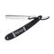 Shavette aluminium gris, manche ébène, livrée avec une lame interchangeable (à couper en 2 dans le sens de la longueur) à insérer dans l'adaptateur blanc.