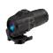 L’agrandisseur JULIET4 4x est conçu pour fonctionner comme une solution de grossissement en combinaison avec une optique reflex ; c’est un excellent choix pour la transition des cibles proches aux cibles intermédiaires. En combinaison avec une optique reflex, le JULIET4 peut être ajusté en hauteur à l’aide d’entretoises. Il est monté sur un système PowerCam à 90 o de sorte qu’il peut être rapidement tourné sur le côté pour des prises plus rapprochées. Sa fixation à déclenchement rapide est équipée d’ailettes de recul intégrées pour pouvoir démonter et remonter l’agrandisseur sans perdre le calibrage. La coque est en aluminium aéronautique, répond aux exigences IPX-8 évalué pour l’étanchéité, submersible dans l’eau jusqu’à 20 mètres pendant 1 heure, la hauteur est réglable via des entretoises inclus (1.41 ", 1.53" et 1.63").