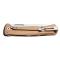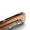 La barre de verrouillage est renforcée par un insert en acier trempé, système de roulement à billes IKBS. Manche en Titane 6AL4V bronze et incrustations en fibre de carbone doré au recto. Système de verrouillage par Frame Lock.