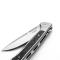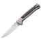 La barre de verrouillage est renforcée par un insert en acier trempé, système de roulement à billes IKBS. Manche en Titane 6AL4V gris et incrustations en fibre de carbone gris au recto. Système de verrouillage par Frame Lock.