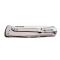 Une lame forme Drop Point en acier MagnaCut finition stonewashed équipée du système REF (Removable flipper), si vous ne voulez pas de flipper vous pouvez dévisser la languette à l'aide de la clé Torx T6 et mettre la deuxième vis fournie dans la boîte qui s'adapte parfaitement au trou situé au bas de la lame.