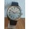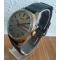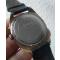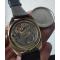 Aiguilles et chiffres dorés, trotteuse rouge sur cadran beige.