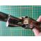 Carasse finement ciselée finitions argentées. Plaquettes en noyer.   Longueur totale : 18 cm.