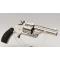Revolver baby russian , finition nickelé d'origine parfaitement conservée, chien et détente jaspés, capacité de 5 coups en calibre 38 smith & wesson. Mécanisme complet et fonctionnel avec toutes pièces d'origine, verrouillage sans jeu, entre fer et indexation de chambre parfaite. Plaquettes en gutta percha marron foncée d'origine. Canon de 4 pouces, rayures sans usure particulière d'aspect brillante avec fines taches. Marquages de l'adresse et des brevets non atténués sur la bande supérieur.