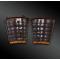 Sode en bois laqué marron tressée de soie bleue et orange.