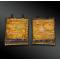 Sode en fer laqué noir tressée de soie noire et jaune.
