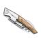 Couteau sommelier Le Thiers par C. DOZORME, 3 pièces (lame coupe-capsule dentée, double levier avec décapsuleur, tire-bouchon), manche 13 cm olivier, avec étui cuir.