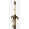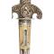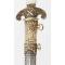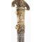 Dague de l'érection de l'obélisque de Louxor. En vermeil, nacre et or. Pommeau à cartouches, têtes de lion et trèfles, fusée en nacre cannelée comportant sur l'avers et le revers une plaque en or ciselé. Pièce de garde à l'antique, deux quillons courbes finissants par des trèfles. Sur le noeud de corps figurent les allégories de la marine (l'obélisque choisi par Champollion a été transporté par bateau le « Louxor ») ainsi que de l'artillerie (Pour les 350 artilleurs qui ont procédés à l'érection du monument). Lame droite type mamelouk dorée et ajourée au quart puis à pans creux et filet médian. Elle est marquée au talon « Queillé Fecit » (fait par Queillé) et la date « 1836 ». Fourreau en acier noirci offrant un décor géométrique à l'oriental. Deux garnitures en vermeil. La chape à deux anneaux figure d'un côté le dieu hermès assis à coté de l'obélisque et de l'autre la déesse prudence. Sur la tranche, un cartouche marqué « LA MARINE PROTÈGE LES ARTS ». Bouterolle ornée d'une gloire à l'antique. Longueur totale : 33,5 cm. Poids brut : 322 grammes