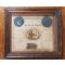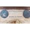 Lithographie Fabre, (1871) encadrée. Feuillet 13 x 15 cm monté sur carton. Feuille papier imprimé avec 2 médailles au profil de Guillaume Ier Empereur et Napoléon III Empereur, morceau de pain, fleurs séchées avec les dates principales, le prix des denrées alimentaires.