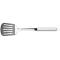 Spatule ajourée en inox CRISTEL, idéale pour retourner viandes et aliments dans poêles ou sauteuses. Manche inox brossé, tête brillante. Compatible lave-vaisselle et barre Panoply.