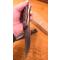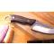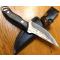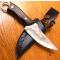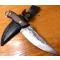 COUTEAU SPLENDIDE DE BONNE FABRICATION , EN ACIER AVEC DES DESSINS EN CREUX DÛ AU MARQUAGE DE LA FORGE , QUAND ON REGARDE BIEN, CES MARQUES RESSEMBLENT A UN PAYSAGE VALLONNES MONTAGNEUX AVEC DES SOMMETS ARRONDIS, CE QUI DONNE UN TRES BEL EFFET SUR LA LAME -- COUTEAU TRANCHANT + UN POLI SATINE TYPE SABLAGE LEGER, SAUF SUR LE TRANCHANT -- ACCOMPAGNE DE SON FOURREAU DECORE DE PETITS DESSINS + FERMETURE A PRESSION -- TRES BELLES PLAQUETTES EN BOIS MASSIF MARRON FONCE -- TRES BONNE PRISE EN MAIN AVEC UN ARRONDI SOUS LA LAME POUR L'INDEX + UN LEGER ARRONDI SUR LE DESSUS POUR LE POUCE -- EPAISSEUR LAME = 4,02mm PRES DU MANCHE ET S'AFFINANT A LA POINTE -- LONGUEUR TOTALE DU COUTEAU = 22cm ENVIRON -- LONGUEUR AVEC L'ETUI = 23 cm -- LONGUEUR DE LA LAME = 12cm -- LARGEUR MAXIMUM DE LA LAME = 40 mm A LA BASE EN S'AFFINANT VERS LA POINTE -- POIDS COUTEAU SEUL = 174 grs -- POIDS TOTAL = 196 grs -- PASSANT = 5cm maxi POUR CEINTURON OU CEINTURE -- EXCELLENT COUTEAU AVEC UN ANNEAU MASSIF A L'ARRIERE DANS LE PROLONGEMENT DE LA LAME MONTEE A PLATE SEMELLE -- SOLIDE , EPAIS , MASSIF POUR CHASSE EN 2ème COUTEAU POUR DEPECER DU PETIT GIBIER -- POUR LA RANDONNEE , ET BIEN D'AUTRES CHOSES -- COUTEAU NEUF FONCTIONNEL --
