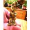 12 CLICHES POUR CE JOLI PETIT BRONZE D' EPOQUE 1940/60/A PATINE BRONZE + PETIT BRILLANT SATINE - SCULPTURE REPRESENTANT UN JEUNE GARCON ASSIS SUR UN SOCLE A DECORS - SON BRAS EST LEVE, TENANT UN PANIER TRESSE ROND SUR LE DOS DE SA MAIN GAUCHE RESSEMBLANT A UN GROS NID, COMME S'IL ATTENDAIT QU'UN OISEAU OU FAUCON VIENNE S'Y POSER-