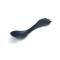Couverts 3 en 1 : Une cuillère, une fourchette et un petit couteau sur le côté de la fourchette.