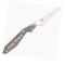 Une lame lisse et satinée en acier M398 de forme Wharncliffe à cran Slip Joint et profil plat. Toujours doté du fameux trou rond Trademark.