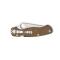 Le manche en micarta marron (très agrèable au toucher il formera une patine avec le temps) a été rétréci à l'extrémité afin d'améliorer l'ergonomie.
