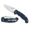 La lame et le manche sont reliés par le mécanisme breveté Ball Bearing Lock de Spyderco. Manche 13 cm G10 de couleur bleu cobalt doté de doublures en acier inoxydable squelettisées et d'un clip de poche réversible pour le porter à droite ou à gauche.