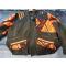 Devant : Fine capuche rétractable dans le col / Epaules Renforcées et contrastées / poche poitrine zippée sous flap / 2 poches repose mains zippées / 2 grandes poches plaquées à double entrée, à soufflets ajustables / poignets réglables.