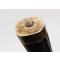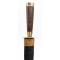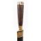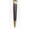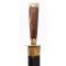 Stylet Corse Romieu XIXè. Fusée en corne brune à godrons sur ses flancs jusqu'aux bordures de la mitre laiton rivetée, virole découpée, garde plate à quillon stylisés. Fourreau bois recouvert de cuir noir à deux garniture de laiton, chape sans anneau, bout à talon plat en laiton. Lame à double tranchant et méplat médian longue de 17,4cm large de 24cm.