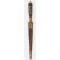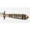 Beau stylet de la Castagniccia. Fusée à empilement de rondelles de corne noire et dix de brune de corne brune, bagues de cuivre et d'étain, clous et fil torsadé formant balustre de laiton, mitre bombée et gravée de feuillages à bouton de rivure, virole à facettes portant de fine gravures de végétaux, fine garde en laiton ouvragée. Fourreau bois recouvert de cuir brun rougeâtre à deux garniture de laiton, chape sans anneau, bouterolle décorée en suite dont manque le fond ou le dard. Lame à double tranchant damassée à l'acide et méplat médian longue de 14cm large de2,4cm.