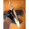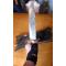 SUBLIME POIGNARD DE CHASSE (((( D'OCCASION COMME NEUF AVEC TRES MINIMES TRACES DE FONCTION ))))) LAME BRUTE DE FORGE + MARQUAGE EN CREUX A LA PRESSE + PLAQUETTES DE MANCHE EN OS -- GARDE + RIVETS ET HAUT DU MANCHE EN LAITON -- TRES EPAIS = 5mm -- FABRICATION ARTISANALE EN ACIER BRUT DE FORGE AVEC DE BELLES TRACES EN CREUX DANS LA MATIERE -- CE SUPERBE POIGNARD A TRES PEU SERVI IL PEUT FAIRE ENCORE UN TRES TRES LONG TRAJET VU SA GRANDEUR 41,5 cm , SON EPAISSEUR , SA LARGEUR DE LAME 50mm , ULTRA ROBUSTE ET ENCORE TRES TRANCHANT + SON LEGER BRILLANT SATINE QUI LUI DONNE UN AIR MAJESTUEUX ET NOBLE -- QUAND VOUS PORTEZ CE POIGNARD A LA HANCHE DE PRESQUE 900grs AVEC L'ETUI , VOUS N'AVEZ PEUR DE RIEN !!! VOUS POUVEZ COUPER UNE BRANCHE FACILEMENT OU FAIRE UN PIEU, ET BIEN D'AUTRES CHOSES AVEC -- FOURREAU EN CUIR SOLIDE NOIR A DOUBLE COUTURES BLANCHES + DESSINS + FERMETURE DE SECURITE AVEC UNE PRESSION DE QUALITE -- LA LAME N'A AUCUN CRAN VOUS POUVEZ LUI DONNER UN PETIT COUP DE RAFÛTAGE SELON L'USAGE QUE VOUS EN FEREZ -- FABRIQUE EN UN SEUL MORCEAU D'ACIER DE LA POINTE AU BOUT DU MANCHE (( A PLATE SEMELLE )) POUR UNE EPAISSEUR DE 5,00 mm UNE FOIS TERMINE -- LES TRACES DE MARTELAGES SONT MARQUEES EN CREUX MAIS S'ARRÊTENT A LA GARDE -- UNE EXCELLENTE PRISE EN MAIN -- LA LAME S'AFFINE VERS L'AVANT , ELLE PEUT ENCORE DEPECER ET COUPER DE BEAUX QUARTIERS DE VIANDE SANS PROBLEME , AINSI QUE DU BOIS -- LONGUEUR DE LA LAME = 27,7 cm -- LONGUEUR DU MANCHE AVEC GARDE = 13,7 cm -- PASSANT LARGE POUR CEINTURON OU CEINTURE JUSQU'A 9 cm -- EXCELLENT POIGNARD, SUPER SOLIDE , MASSIF , BRUT DE FORGE DU PLUS BEL EFFET -- POUR LA CHASSE , LA RANDONNEE , LA JUNGLE, ET BEAUCOUP D'AUTRES CHOSES -- UN SUPER AMI DANS LES BOIS OU EN RANDO -- SUPERBE PIECE D'OCCASION, TRES FONCTIONNELLE -