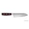 SUPER GOU - Santoku Poids Net : 215 Longueur de Lame: 165 Acier: SG2 Finition: Micarta Profil: Santoku Couleur de la lame: Damas Tranchant: Lisse Verouillage: Fixe Couleur Lame: Rouge Code Barrre: 4984909371019
