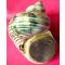 SUPERBE COQUILLAGE EXOTIQUE TRANSFORME EN COFFRET POUR PIERRES PRECIEUSES-- POUR COLLECTION OBJETS DIVERS DE VITRINE etc-( GENRE ESCARGOT AVEC UN CÔNE EN POINTE ) EGALEMENT POUR EXPOSITION DANS LES SALONS // CADEAU SYMPA // TRES BELLE COQUILLE PROPRE DE TOUT ORGANISME ET POLIE + UN LEGER PETIT BRILLANT SATINE -- Mesures: Longueur = 5cm X Largeur = 5cm -- Diamètre ovale de l'ouverture a pierres précieuses = 19mm X 14mm -- Si vous le remplissez de diamants, vous serez une personne riche -- Poids = 40 grs -- Un joli spécimen propre et sain en très bon état, de belles stries vertes/marrons/blanches/ Un objet original et bien reussi -- Pour collection de coquillages // de corail // de pierres et minéraux divers --