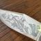 Lame acier inoxydable finition polie miroir avec gravure de scène de chasse : Chien de chasse , carbine , jumelle, Cerf.