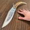 Manche en belle pointe de bois de Cerf, deux rivets laiton et renfort acier.