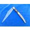 - Matière du manche : CORNE NATURELLE & OS (Bovidé : Testé à l'aiguille portée au rouge) & LAITON & ARGENT ? (Ecusson)