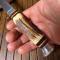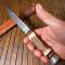 Manche en bois de Cerf naturel, pommeau aluminium, lame marquée dans un cartouche SUPER HOLLOW GROUND, gravure de la marque.