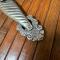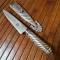 Manche et fourreau en Alpaca argent local entièrement travaillé au repoussé, rivure en laiton, lame acier à simple tranchant.