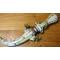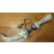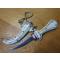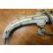 SUPERBE COUTEAU ARTISANAL ETHNIQUE ORIENTAL ACCOMPAGNE DE SON FOURREAU EN OS DE CHAMEAU POLI -- LAME EN ACIER SATINEE A UN SEUL TRANCHANT PEU COUPANTE, RECOURBEE VERS L'AVANT -- TRES BEAU MANCHE AVEC UNE POINTE EN LAITON AU SOMMET, TRES BONNE PRISE EN MAIN , EGALEMENT EN PLAQUETTES D'OS DE CHAMEAU ASSEMBLEES ET COLLEES COMME SUR LE FOURREAU + RAJOUTS DE PETITES FLEURS EN LAITON, TOUTES CES PLAQUETTES D'OS ONT ETE ASSEMBLEES SUR UN SQUELETTE SOLIDE EN LAITON PLUS OU MOINS EPAIS, SELON SI ON L'OBSERVE DE CHAN OU A PLAT, UNE BONNE GARDE DE MÊME MATIERE PROTEGE LA MAIN -- LONGUEUR DU COUTEAU DE LA POINTE DE LA LAME A LA POINTE DU MANCHE = 28cm -- LONGUEUR TOTALE AVEC L'ETUI = 30,5 cm -- POIDS TOTAL = 362 grs -- DEUX EXCROISSANCES LAITON ET OS ACCOLEES AU FOURREAU SOUTIENNENT 2 ANNEAUX EN LAITON POUR PASSER LA CORDELETTE DE SOUTIEN -- ANNEES AUX ENVIRONS DE 1950/60/