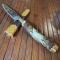 DIMENSIONS : lame 12 cm , couteau 25,5 cm et 27,5 cm dans son fourreau.