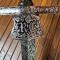 Lame à double tranchant entièrement gravé, de trophées darmes à attribu militaire , fleurs, feuillages et volupte .