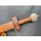 TRES BELLE POIGNEE RECOUVERTE DE CUIR ET TERMINEE PAR UNE SORTE DE MEDAILLON,