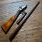 MONTURE EN BOIS DE NOYER CHOISI, JOLIMENT VEINÉE CROSSE A L'ANGLAISE, PLAQUE DE COUCHE EN GUTTA-PERCHA, BOÎTIER ENTIÈREMENT GRAVÉ NOTAMMENT DE SCÈNES DE CHASSE A LA PLUME .
