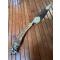 Dans son fourreau cuir épais à deux garnitures maillechort orné de trophées de chasse, cerfs et feuilles de chênes .