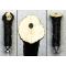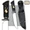 Superbe couteau de chasse de type allemand après-guerre, POST WW2. La poignée est en corne brune et blanche avec la gravure d'une tête de cerf, '' fissurée sur toute la longueur '' mais très solide, pas de jeu. La lame est assez forte, on y retrouve les marquages '' INOX PAT. ''. Le fourreau est en cuire robuste, avec son bouton d'attache. Il s'agit d'un très beau couteau de chasse, totalement original, il aurait entre 40-50 ans (à vérifier).